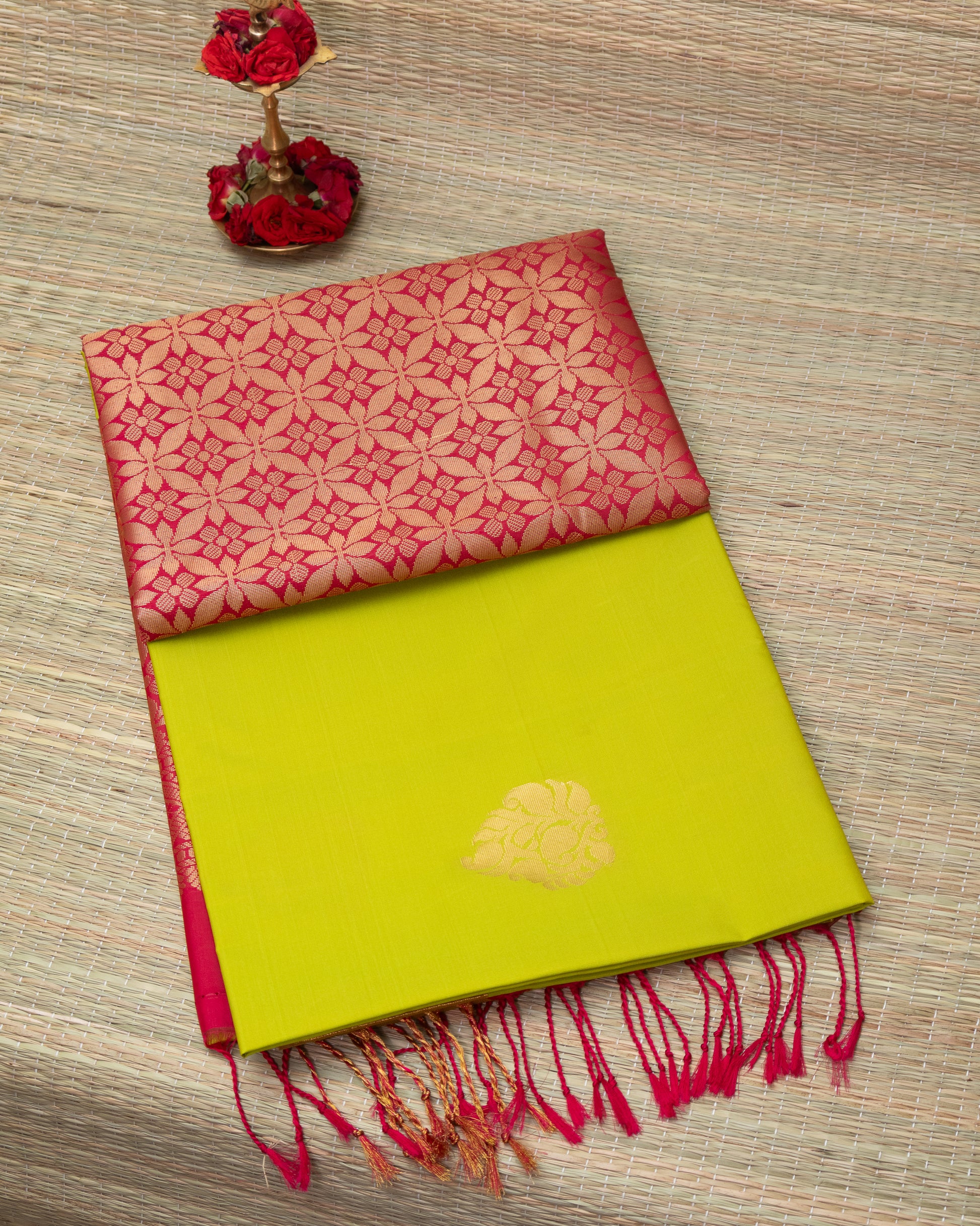 Crafted from premium semi-silk, the Semi Silk 1000 Butta saree features an intricate array of tiny butta motifs that enrich its texture and visual appeal. This fabric offers a smooth, elegant drape ideal for formal occasions, while the detailed weaving highlights traditional craftsmanship with a contemporary edge. Perfect for those seeking refined sophistication, this saree combines durability with timeless style to enhance any wardrobe.